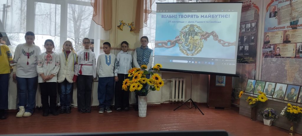 Наш заклад освіти долучився до відзначення цієї доленосної події в Україні початку ХХІ століття. Проведені години спілкування ,, Пам’ятай їх вчинок і обличчя”, інформаційні хвилини ,,Згадаймо, як це було…”, лінійка пам’яті ,,З Україною в серці”.