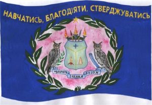 У верхній частині – слова з Біблії «Навчатись, благодіяти, стверджуватись».